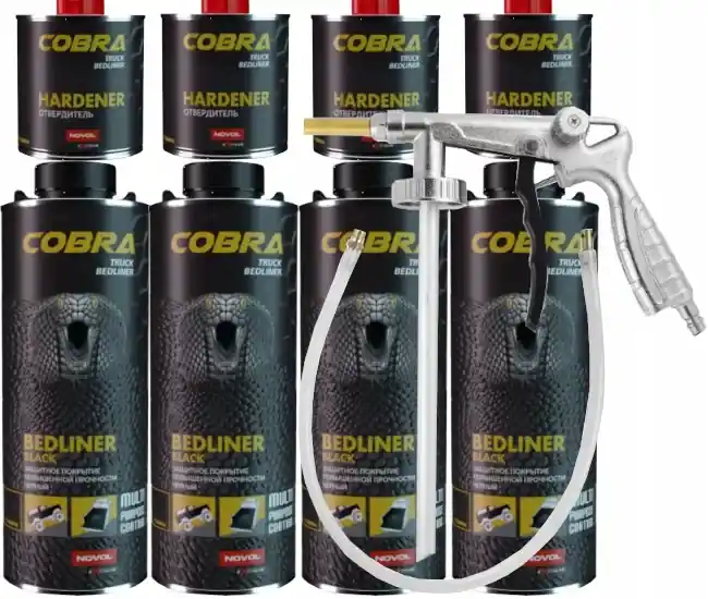 COBRA Truck Bedliner – powłoka ochronna z efektem strukturalnym na bazie żywic poliuretanowych 2K. Ma bardzo wysoką wytrzymałość mechaniczną i jest odporna na zarysowania. Zabezpiecza przed wpływem czynników atmosferycznych, benzyną, olejami, wodą i solą. Ma właściwości dźwiękochłonne i wygłuszające. Struktura powierzchni nadaje efekt antypoślizgowy. W wersji standardowej występuje w kolorze czarnym, w wersji do barwienia pozwala na uzyskanie dowolnego koloru przez dodanie 10-15% farby akrylowej lub bazowej.