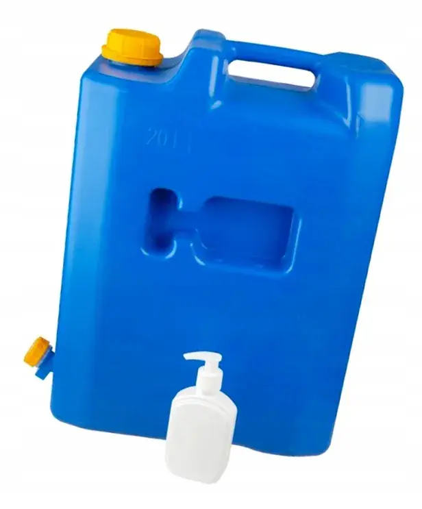 Kanister na wodę 20L z plastikowym zaworem + dozownik na mydło lub środek dezynfekujący