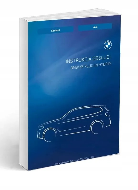 Niniejsza instrukcja stanowi instrukcję obsługi modelu BMW X3 xDrive30e z napędem hybrydowym typu plug-in, produkowanego w latach 2022–2025. Zawiera szczegółowe informacje dotyczące eksploatacji, obsługi technicznej, systemów pokładowych oraz ładowania pojazdu.