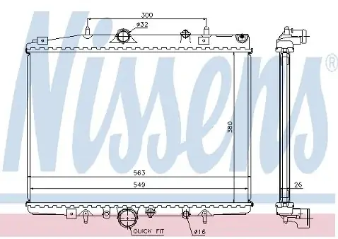 Wyposażenie pojazdu: dla pojazdów z/bez klimatyzacji Wymiary radiatora: 543 x 362 x 26 mm Rodzaj chłodnicy: Żebra chłodzące lutowane Materiał żeber chłodzących: Aluminium Materiał zbiornika wody (chłodnica):