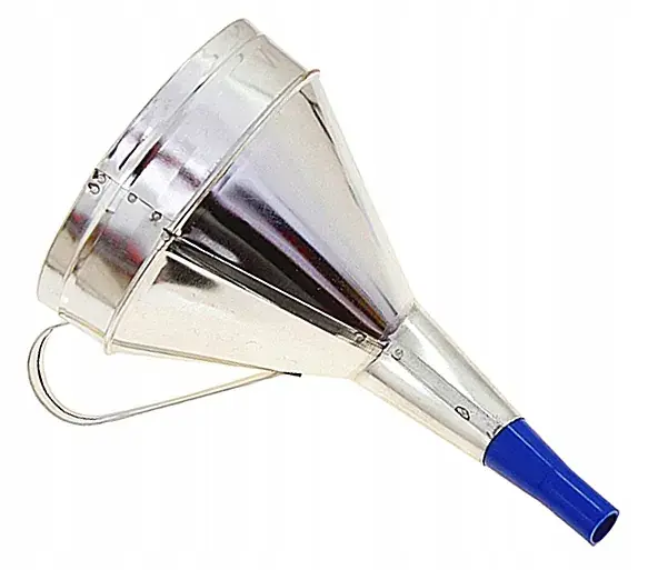 Gęste sitko w lejku zatrzyma każde zanieczyszczenie w przelewanym płynie.