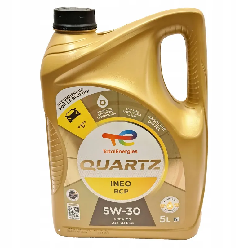 Quartz Ineo RCP 5W-30 to olej stworzony na zaawansowanej technologii syntetycznej opracowany specjalnie dla turbodoładowanych silników wysokoprężnych 1.5 BlueHDi (DV5R: YHX / YHY / YHZ / YHW / YHV / YHR) w tym spełniający normy Euro 6.2, 6.3 i 6.4) produk